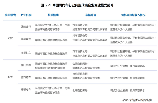 如以滴滴、易到、美团为代表的C2C模式,以及以首汽约车、曹操专车为代表的B2C模式。