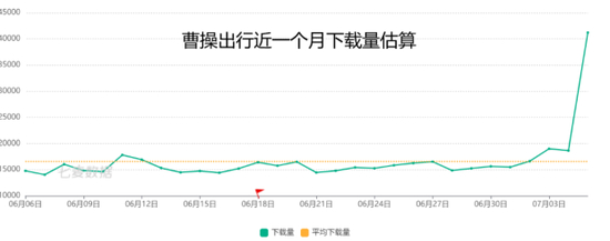 曹操出行从过去在15000左右波动,直线飙升到了75000,上涨5倍左右。