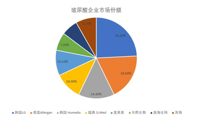 根据东方证券数据,进口玻尿酸品牌目前占据市场主导地位,且以中高端为主,从销售金额占比来看,2019 年国外企业占据前四,分别为韩国 LG(24.2%)、美国 Allergan(18.6%)、韩国 Humedix(14.3%)和瑞典 Q-Med(10.9%),CR4 高达 68%。