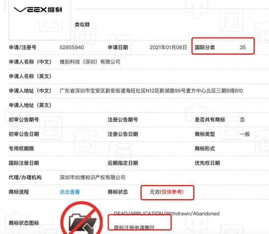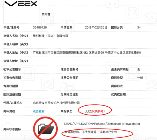 也就是说,VEEX 维刻也没有商标权。