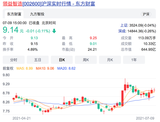 值得注意的是,从去年12月股价14.88元高位至今,领益智造股价已经跌去38.58%。如今最新股价9.14元,市值645亿元。