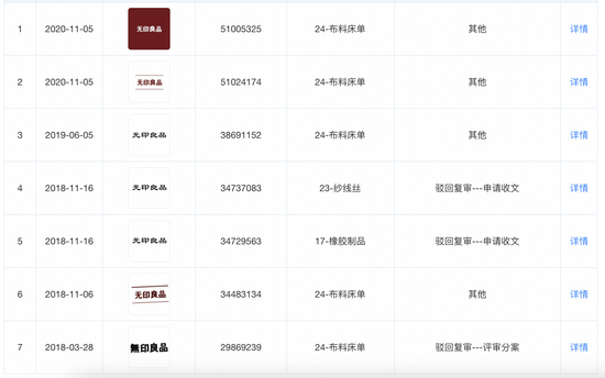 资料显示,日本“無印良品”母公司“株式会社良品计画”1999年就在中国向商标局申请注册了多类“無印良品”商标,但却未申请第24类“纺织品、床上用品、毛巾相关”商标。