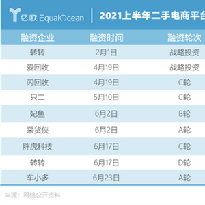 2021年上半年,二手电商赛道绝对算得上是资本市场的“宠儿”。公开数据显示,上半年国内二手电商领域有8家平台共获得9起融资,融资总额超57亿元人民币。