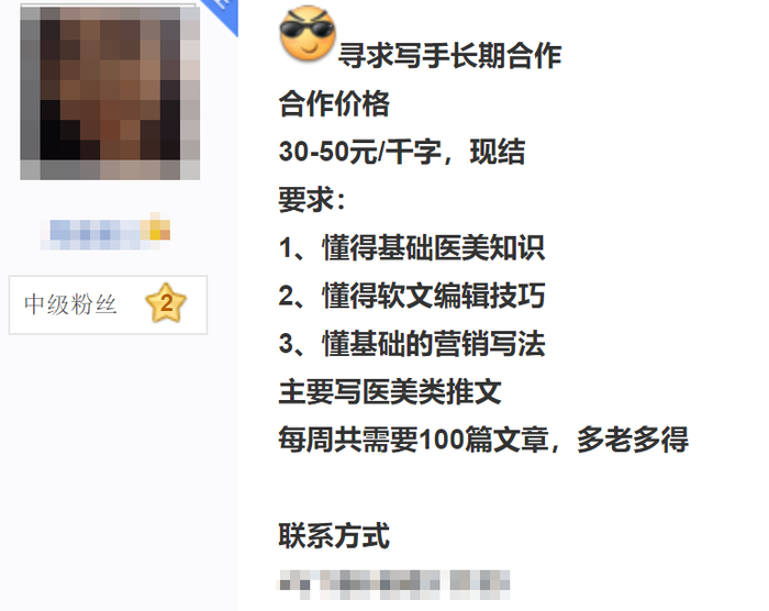 据了解,医美机构找网红做营销推广,还细分为不同形式。一种是请网红实际探店,医美机构要付出较高成本;另一种则是“代写代发”,网红不实际到店,而是根据医美机构提供的素材,制作以假乱真的推广文案。