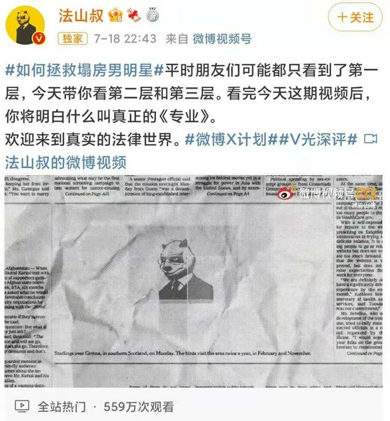 而凭借多次在社会事件中起到的关键性作用,微博似乎又重新成为了承载着无数社会意见的“公共领域”。在都美竹微博声明的转发中,出现了“汤弘扬”“法山叔”“遇见吴杰臻”等法律博主的身影。“法山叔”随后还发布视频“如何拯救塌房男明星”,对索要分手费的“法律实务”进行分析科普。