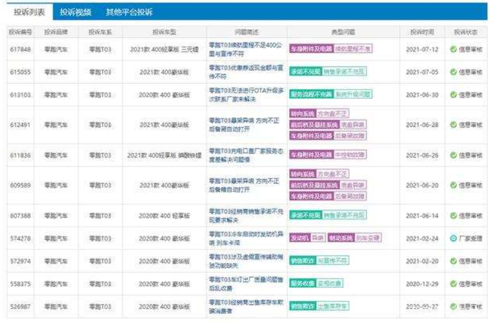 另外一款目前的销量支柱——零跑T03在车质网上也有多起质量投诉,包括存在续航与实际里程相差甚远,转向系统故障,悬架异响,无法进行OTA升级,虚假宣传辅助驾驶功能等问题。