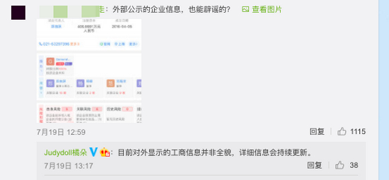 在橘朵微博评论区,面对网友质疑的声音,橘朵官方回复称:“目前对外显示的工商信息并非全貌,详细信息会持续更新。”但截至红星资本局发稿,仍未见橘朵提供更多有力的证据。