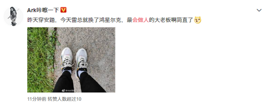 不过,也有网友评论,昨天穿安踏,今天穿鸿星尔克,雷军会做人。
