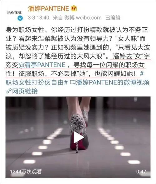 妇女节前夕,潘婷发布了一支反转广告,讽刺女性职场偏见,备受粉丝好评。但其微博上的宣传文案,却惨不忍睹地翻车了。