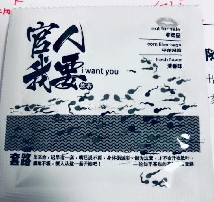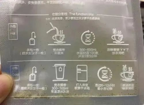 随后,还有网友扒出茶颜悦色的茶包包装,同样大打两性擦边球。“官人我要”文字,搭配嘴唇和蝌蚪图案,让人浮想联翩。泡茶指南更是毫不避讳地带有性暗示意味。