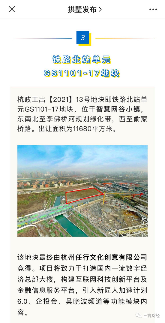 据“拱墅发布”消息,这块地用来建设总部大楼,引入新匠人加速计划 6.0、企投会、吴晓波频道等功能模块内容。