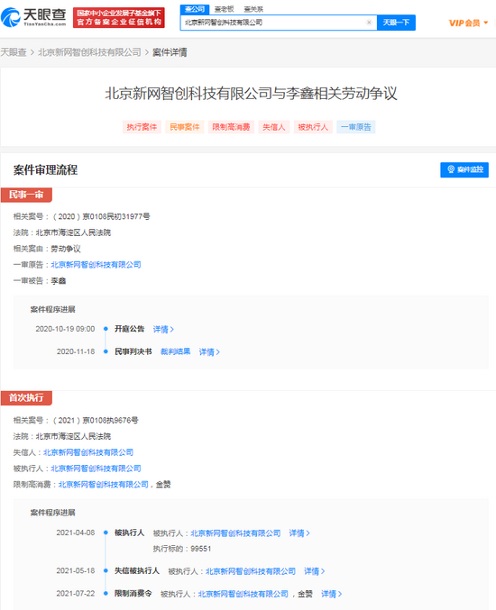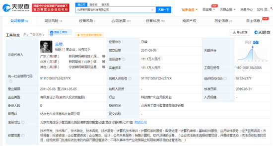 案件详情显示,4月8日,该公司被法院强制执行,执行标的99551元。5月18日,该公司因有履行能力而拒不履行生效法律文书确定义务,被北京市海淀区人民法院列为失信被执行人。