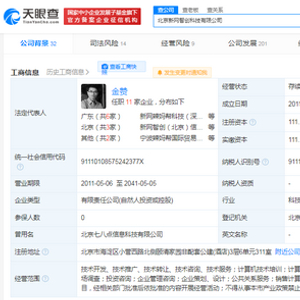 北京新网智创科技有限公司成立于2011年5月,法定代表人为金赞,注册资本111.1万人民币,经营范围包括计算机系统服务;数据处理;公共关系服务等。股东信息显示,金赞为该公司大股东及实际控制人,持股比例约57%。