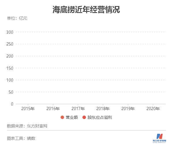 高速成长背后,火锅市场却极其分散。2018年,国内最大的火锅连锁企业海底捞(06862,HK)谋求上市,其招股书揭开了火锅行业的市场竞争格局——以2017年收入计,中国火锅餐厅市场的前五大经营者仅占总市场份额的5.5%。海底捞作为2015年~2017年火锅市场排名第一的企业,市场份额仅为2.2%。海底捞在招股书中称,火锅餐厅市场的经营者在食品质量及一致性、性价比、环境、服务、地点、供应链及员工培训程度等方面竞争激烈。