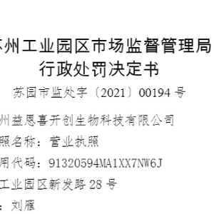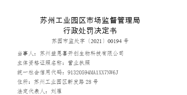 原标题:苏州益恩喜开创生物科技有限公司发布多起“虚假广告”被罚63.2万元