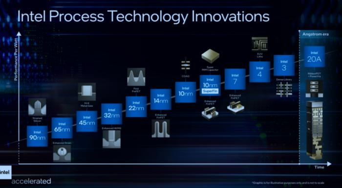 在发布会上,帕特·基辛格和一众高管介绍了两方面的重要信息。其一是英特尔宣布了未来5年的技术路线图,对芯片的制程工艺进行了新的命名,从“纳米”进入“埃米”时代。10纳米Enhanced SuperFin更名为“Intel 7”、Intel 7纳米更名为“Intel 4”、其后是“Intel 3”、下一代将是“Intel 20A”、 “Intel 18A”。