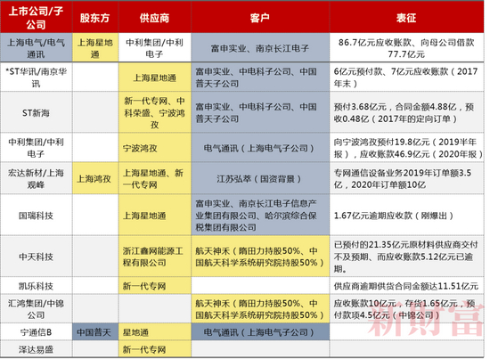 或正因如此,前期“星地通-上市公司-富申实业”的交易链条多由上市公司本身作为通道,而后期则转由上市公司专设子公司进行“特殊通讯设备”业务,来逃避信披的需要(如上海电气在电气通讯中持股仅40%,中利集团在2020年不再并表中利电子等)。