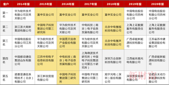表4:*ST华讯2014-2020年前五大客户名单