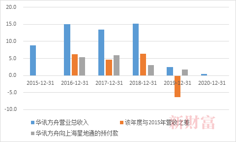 图5:2015-2020年间*ST华讯预付款与营收之间关系