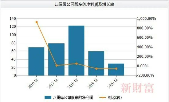 2016、2017年,海高通信前五大客户贡献了营收的8成以上,但其业绩近5年下滑得厉害,营收从2016年的3.2亿元下降到2020年的0.7亿元,过去两年的增速分别是-37%、-26%;而净利润则从2018年的1.2亿元下滑至2020年的0.2亿元,过去两年的增幅分别是-51%、-50%(图3、4)。