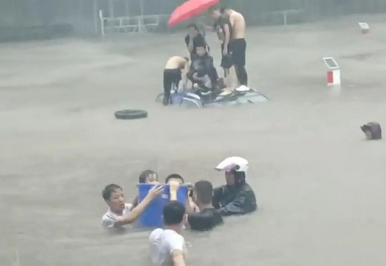 有人从雨灾里奋起自救或无奈撤离,也有人向深水处无畏挺进。