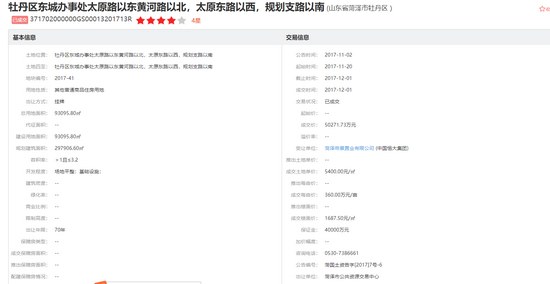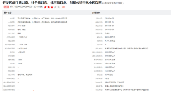 其中,恒大华府、恒大绿洲项目于2017年11月拿地,这个以“牡丹区东城办事处太原东路以东、规划支路以南、天香西路以西、黄河路以北”为界的地块,当年成交地价是5400元/平方米;恒大悦澜庭项目于2018年4月拿地,这个以“开发区闽江路以南、牡丹路移动、纬三路以北、剑桥公馆杏林小区以西”为界的地块,当年成交地价是3900元/平方米。