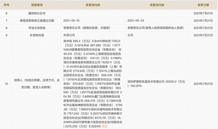 此次退出的股东中,包括元璟资本投资经理、达晨创投执行合伙人、涌金系有限合伙企业、友信关联公司以及创始人旗下深圳无域科技技术有限公司(下称 “无域科技”)。