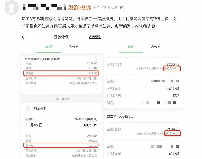 客服表示,目前在平台申请无抵押纯信用贷款需要支付融担费,是因借款有逾期风险,放款方需要有担保费保证客户的还款能力,为保证成功放款而收取,担保费由担保公司收取。有投诉者补充回复,称省呗客服回应可申请免除最后一期融担费。