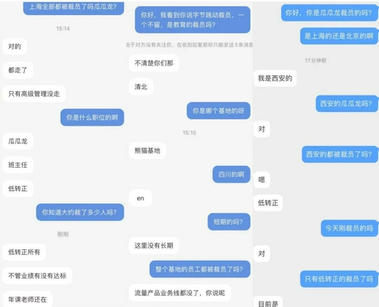 另有北京、上海、四川等多个基地的数名瓜瓜龙员工向字母榜证实,瓜瓜龙低价课老师已被裁员,被裁员工将获得“N+2”赔偿金,正价课老师暂未受影响。
