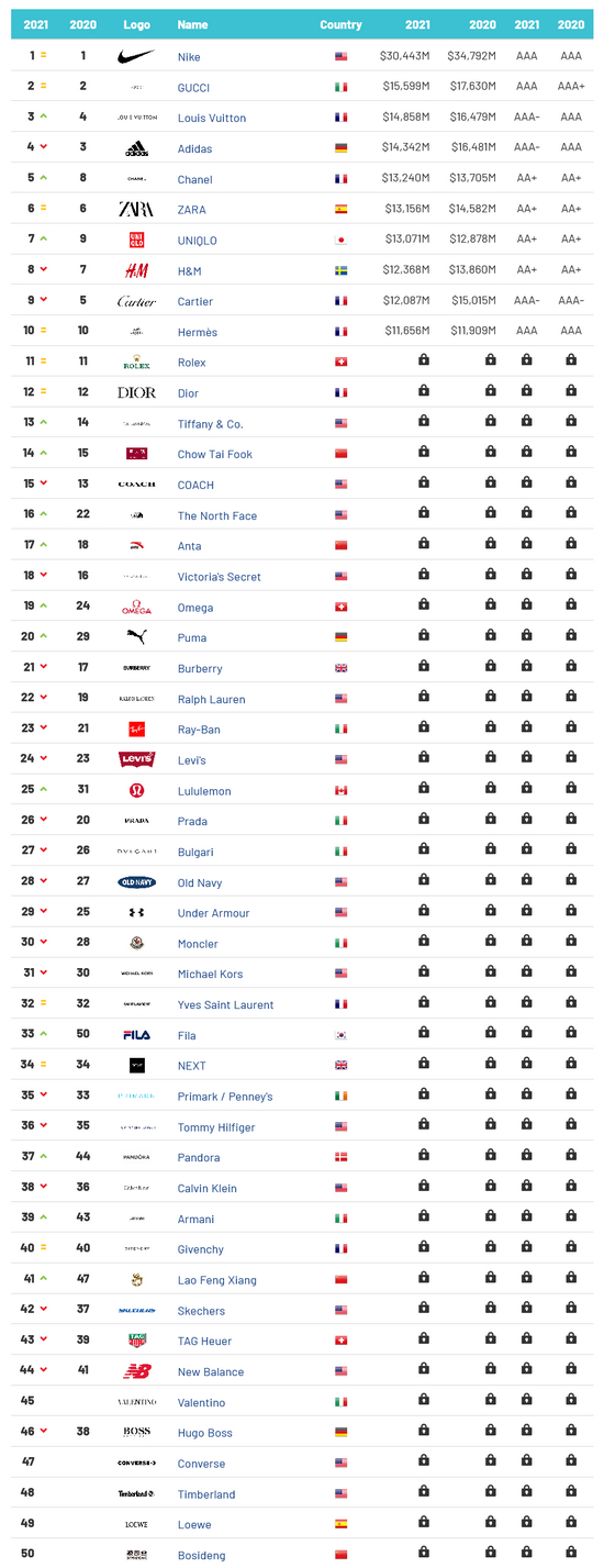 来源:brandirectory网站