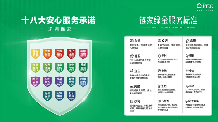 苦练内功方能稳住地位。近日,深圳链家全新推出“十八大安心服务承诺”,帮助购房者在复杂性和不确定性众多的房产交易中规避可能的风险;另一方面,链家通过真金白银的赔付,推动经纪人、服务系统不断提升、开拓变革,为消费者提供品质服务保障,守住交易安全的底线,并持续追求品质服务的上限。