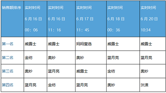 实际上,在每年节庆期间,天猫小二都会在电商平台中,实时报告各家销售量,以刺激企业做活动。从今年内部实时数据来看,618天猫日化板块中,蓝月亮店铺综合销售,已经被威露士赶超。