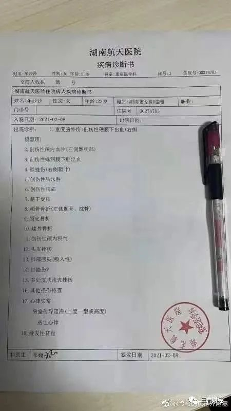 据车某家属提供的信息,2月6日晚9时许,车某搭上货拉拉司机周某春的车;9时30分,车辆驶入曲苑路时,司机周某春拨打120急救和110报警电话称,车某因车辆三次偏航,于长沙市岳麓区曲苑路跳车。当120赶到时,车某已经昏迷不醒,后送至医院急救。