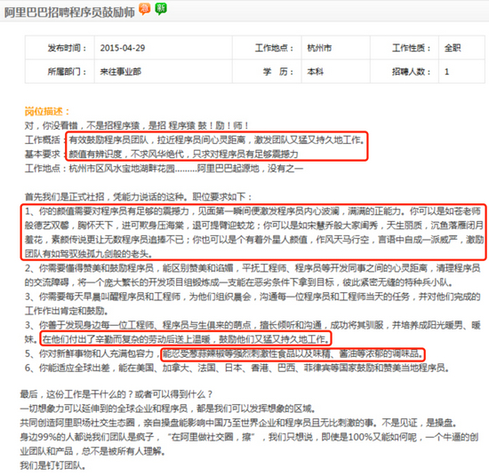 有知乎网友找出了2015年阿里的招聘广告,来证明阿里本次事件爆发,实属冰冻三尺非一日之寒: