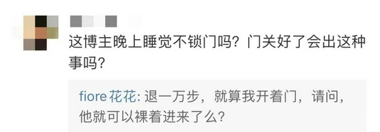 对于花花的发声,网上还出现了诸如“晚上睡觉不锁门吗?门关好了会出这种事吗?”“你应该对自己的长相有信心,正常男人都下不去手”等指责。