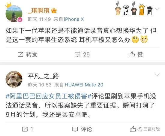 其实,iPhone不提供通话录音功能的相关讨论早已有之。在各大社交平台中都可以看到消费者对这个问题的讨论,甚至还有人说不买iPhone就是因为其不提供通话录音功能。