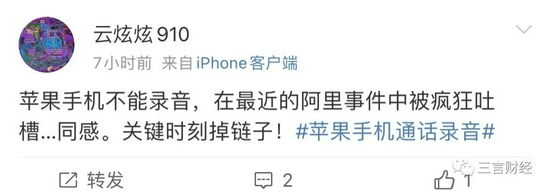 很多网友在社交平台上吐槽苹果不支持通话录音。