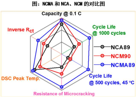 2021年,LG化学将给特斯拉供应镍钴镁铝-NCMA(四种金属的首字母缩写)四元电池正极材料,镍含量高达90%,该材料将用于LG给特斯拉上海工厂ModelY供应的圆柱形电池。NCMA电池中,钴含量将降低到5%,同时新增1%的铝元素。三元锂电池中镍的提高,可以提高电池的能量密度,在相同重量下可以储存更多的电能,让电动车跑的更远。但是镍含量超过90%后,电池热稳定度会大幅度下降,容量也开始下降。韩国教授Yang-KookSun研究,在NCM高镍电池中掺入1%的铝,相比NCA89和NCM90,NCMA89可以显著提升电池的稳定性。在25℃、3.0-4.2V、1C的条件下进行1000次充放电测试,NCMA89、NCM90和NCA89的容量保持率分别为84.5%、68%和60.2%。NACMA使用低钴方案,结合LG化学的独特制造工艺,有望将电池成本降低到100美元/kWh以下。100美元/kWh是一个重要的分水岭,将成为打败和取代燃油车动力系统的分水岭。