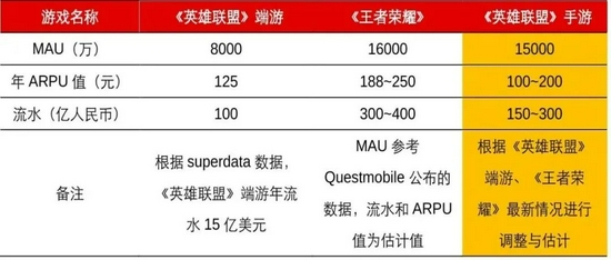 市场对英雄联盟的预估很高,给出1.5亿MAU的期望值。