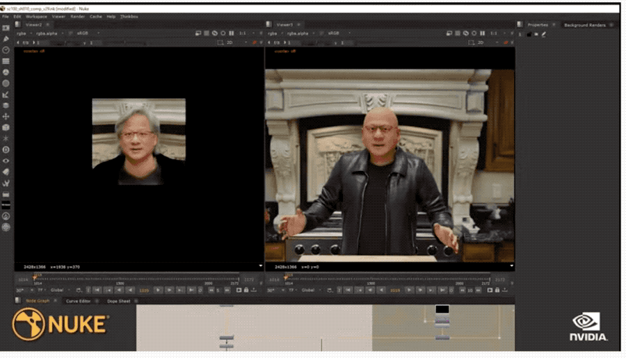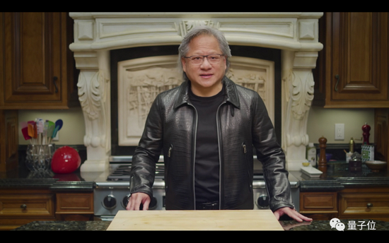 画面中老黄的厨房、标志性的皮衣,甚至他的表情、动作、头发……全都是合成出来的。