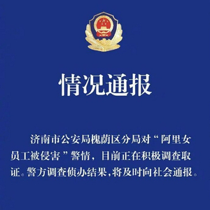 8月8日上午,济南市公安局槐荫分局发布情况通报,对“阿里女员工被侵害”警情,目前正在积极调查取证,警方调查侦办结果,将及时向社会通报。