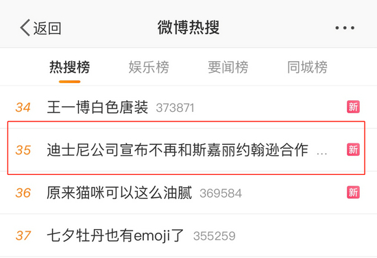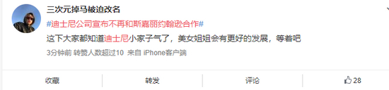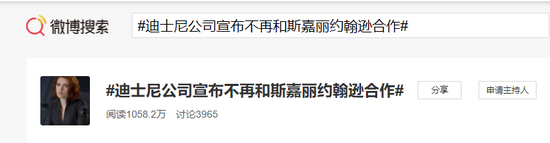 #迪士尼公司宣布不再和斯嘉丽约翰逊合作#登上热搜 网友:迪士尼小家子气了