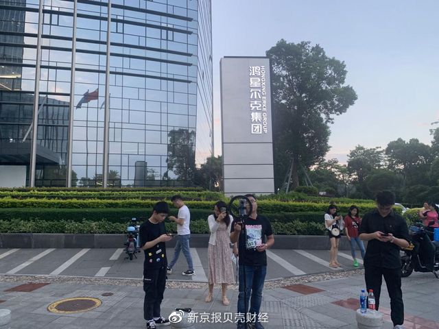 值得一提的是,在傍晚的时候,鸿星尔克集团大楼前聚集了众多前来“蹭热度”的网红,有的甚至直接对着大楼直接开始了直播。其中一位网红告诉贝壳财经记者,加鸿星尔克话题的视频素材在网上传播速度很快,他给记者展示自己前一天下午拍的一条视频,次日上午流量已经达到20万。