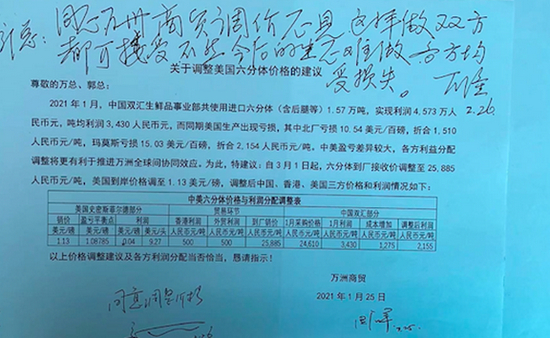 今年3月,现任万洲国际CEO郭丽军提议,将美国公司史密斯菲尔德卖给双汇发展的六分体肉价格,由2万1千5百元,直接提高到2万5千8百元,总共涉及9万多吨。当时该决议遭到双汇发展贸易人员的强烈反对。如今,美国对中国出口的六分体价格只在1万8左右,该笔交易直接造成双汇发展约8亿元的损失。