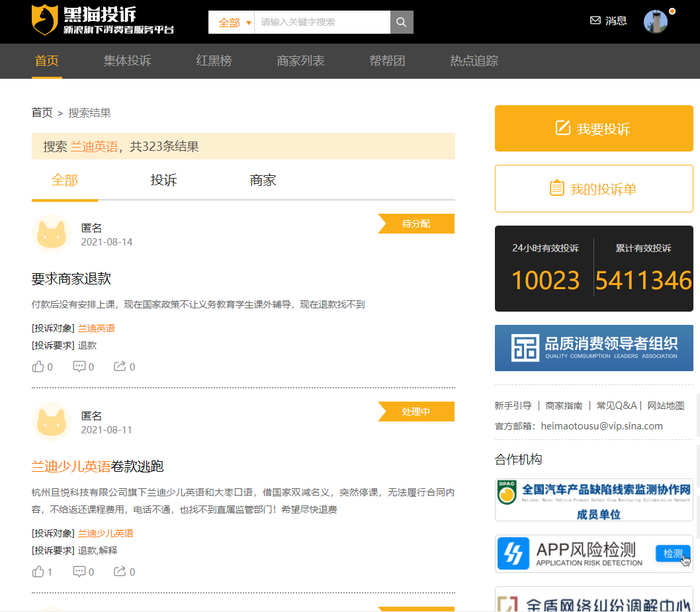 目前,黑猫投诉平台上关于兰迪英语的投诉已超300条,大多都是