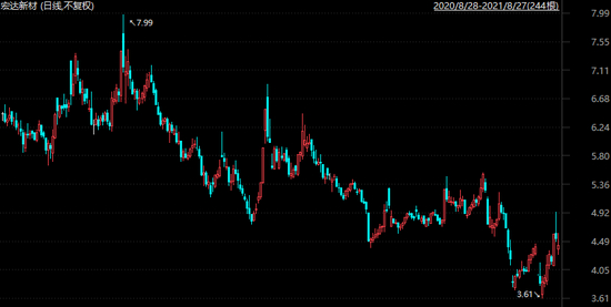 8月27日,宏达新材下跌2.21%,收报4.43元。
