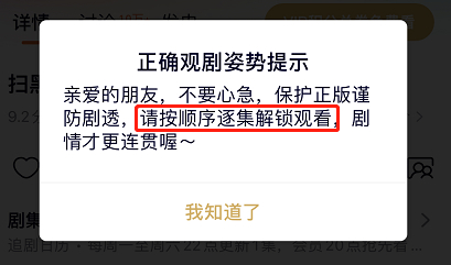 如:想超前点播看23集,必须先买20、21、22集,原本只需要花3元钱就能看,现在必须要花12元钱才能看到23集。