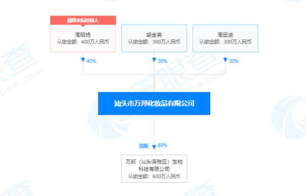 天眼查显示,汕头市万邦化妆品有限公司成立于2013年08月30日,是一家集化妆品研发、生产及服务为一体的化妆品生产企业,法定代表人周运进。