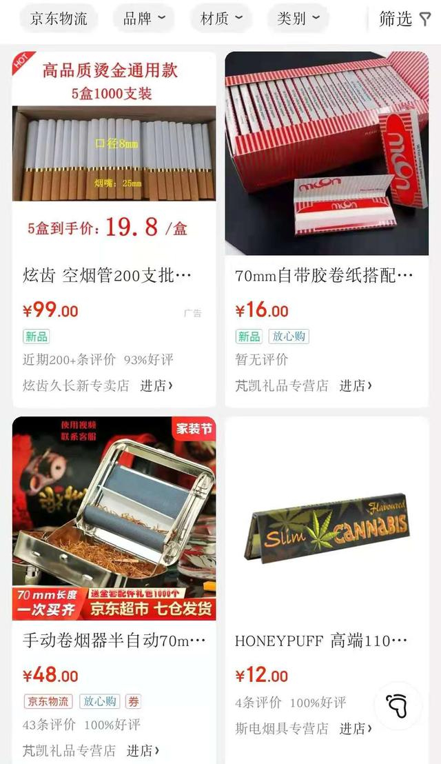 淘宝、拼多多等平台非法出售烟丝、卷烟纸等烟草专卖品