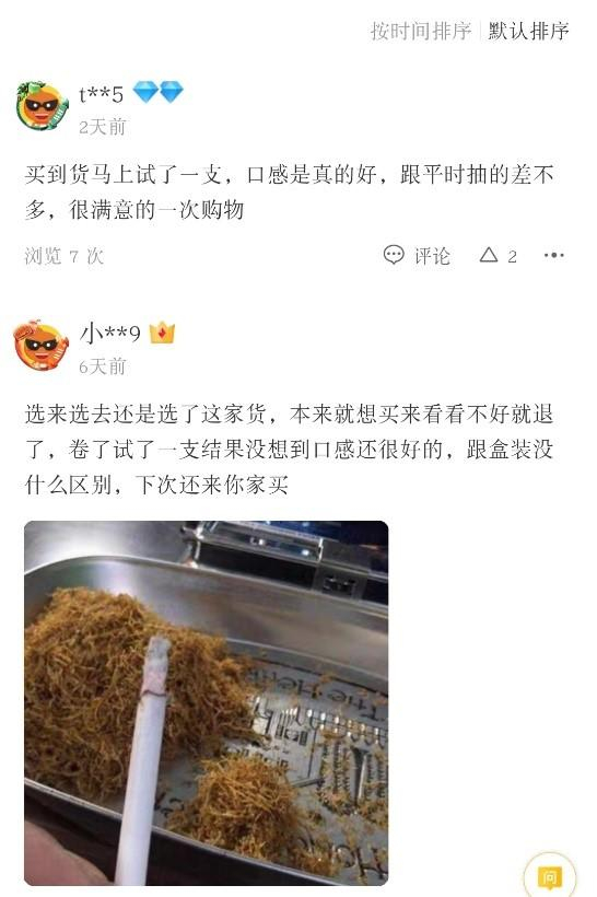 该店铺所售150元的“VIP套餐”包括一斤烟丝、500个烟嘴、500张烟纸以及卷烟器。在该商品的评论区,有评价称“口感还是很好的,跟盒装没什么区别”。